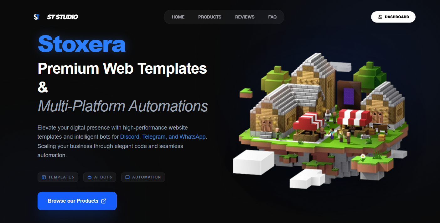 Elevate your digital presence with high-performance website templates and intelligent bots for Discord, Telegram, and WhatsApp. Scaling your business through elegant code and seamless automation.